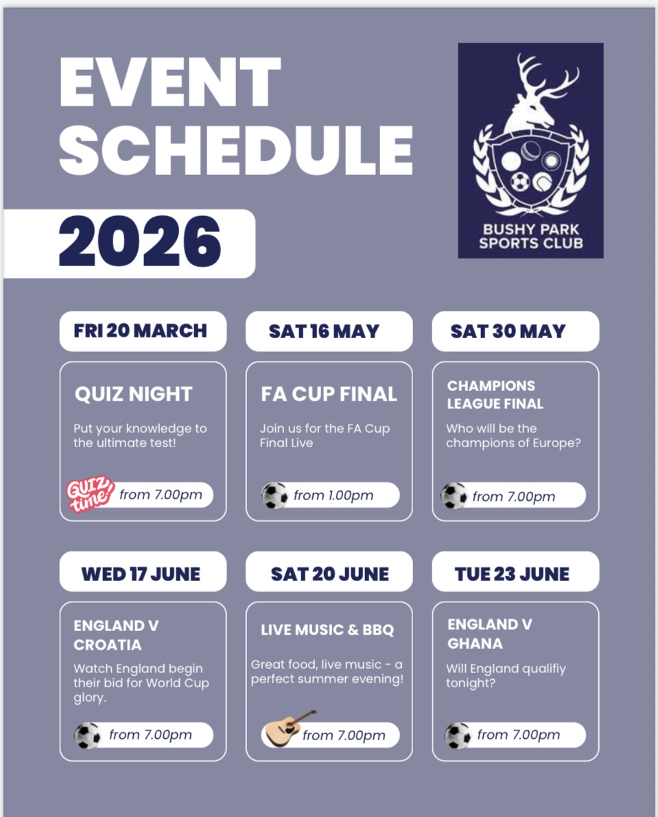 If you have an idea for an event, something you would like to see, let us know! We would love to grow our events portfolio and make Bushy Park Sports Club the place to be...